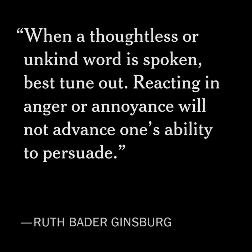 “When a thoughtless or unkind word is spoken, best tune out. Reacting in anger or annoyance will not advance one’s ability to persuade.”